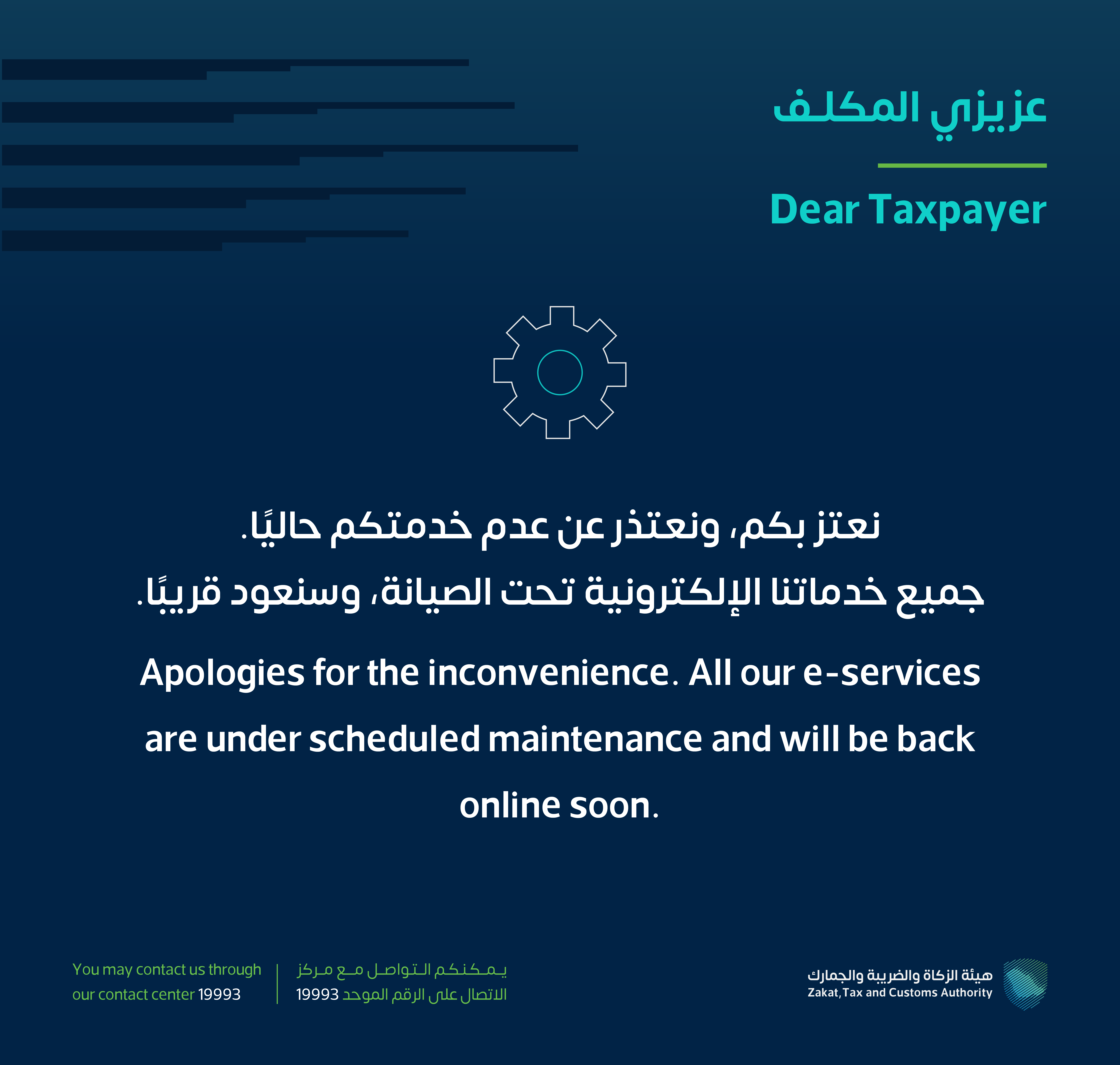 خدماتنا الإلكترونية تحت الصيانة المجدولة وستعود للخدمة قريباً